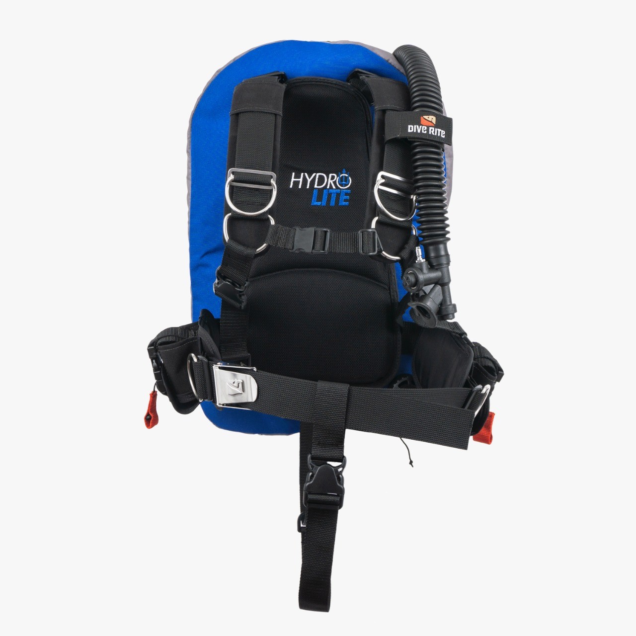 Dual Tank Straps For added stability the Hydro Lite features dual tank straps, as well as a tank height adjustment strap. The top tank strap is Dive Rite’s 2” stainless steel non-marring roller buckle cam strap. The bottom strap is a quick adjust hook-and-loop retainer designed to provide additional tank stability while reducing overall weight.